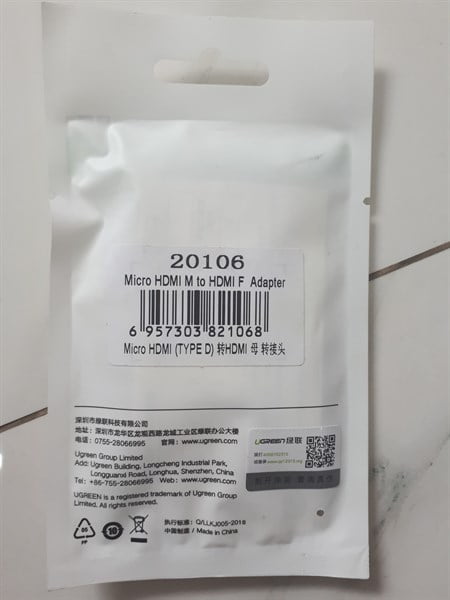 Đầu chuyển đổi Ugreen Micro HDMI to HDMI, UG-20106