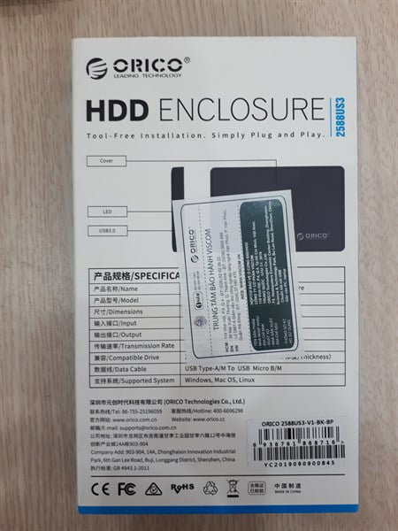 Hộp đựng ổ cứng Orico 2588US3-BK 2.5” SSD/HDD Sata 3, USB 3.0, 5Gbps.